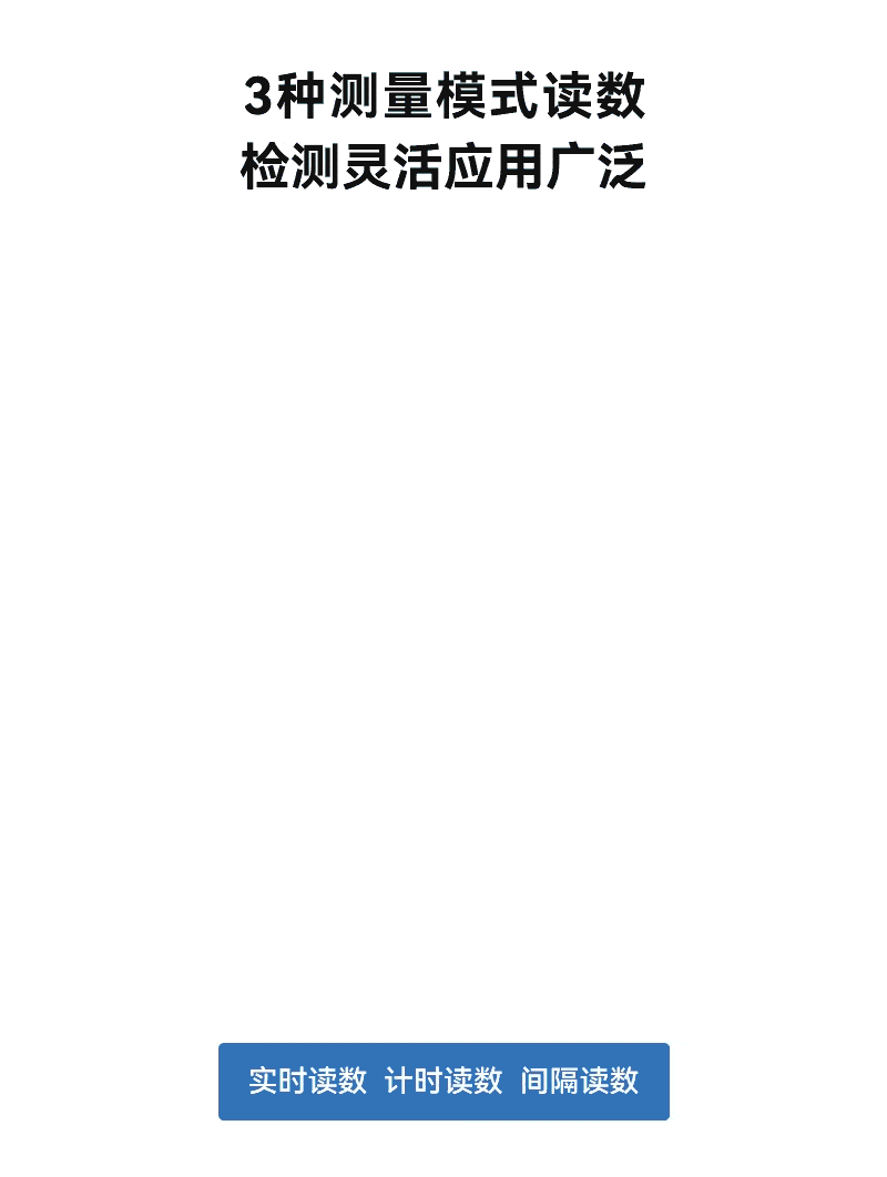 4、內置實時讀數(shù)、計時讀數(shù)、間隔讀數(shù)3種測量模式讀數(shù),可根據(jù)檢測場景及需求靈活選擇;